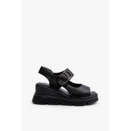Dámské sandály na klínku a platformě z eko kůže, černá triaola
