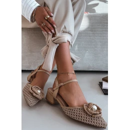 Dámské sandály z síťoviny jsou výjimečnou volbou pro ženy, které oceňují originální styl. Model na stabilním podpatku ve tvaru kostky zajišťuje pohodlí a jistotu při chůzi. Zapínání na přezku s nastavitelým páskem umožňuje dokonalé přizpůsobení noze. Přední část boty zdobí efektní detail s korálkem, který přitahuje pozornost. Tyto sandály jsou ideální na letní výlety, večírky a zvláštní příležitosti. Při výběru velikosti se řiďte tabulkou velikostí.