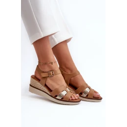Dámské sandály na klínku s proutěním hnědé Starlenna