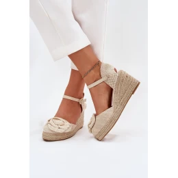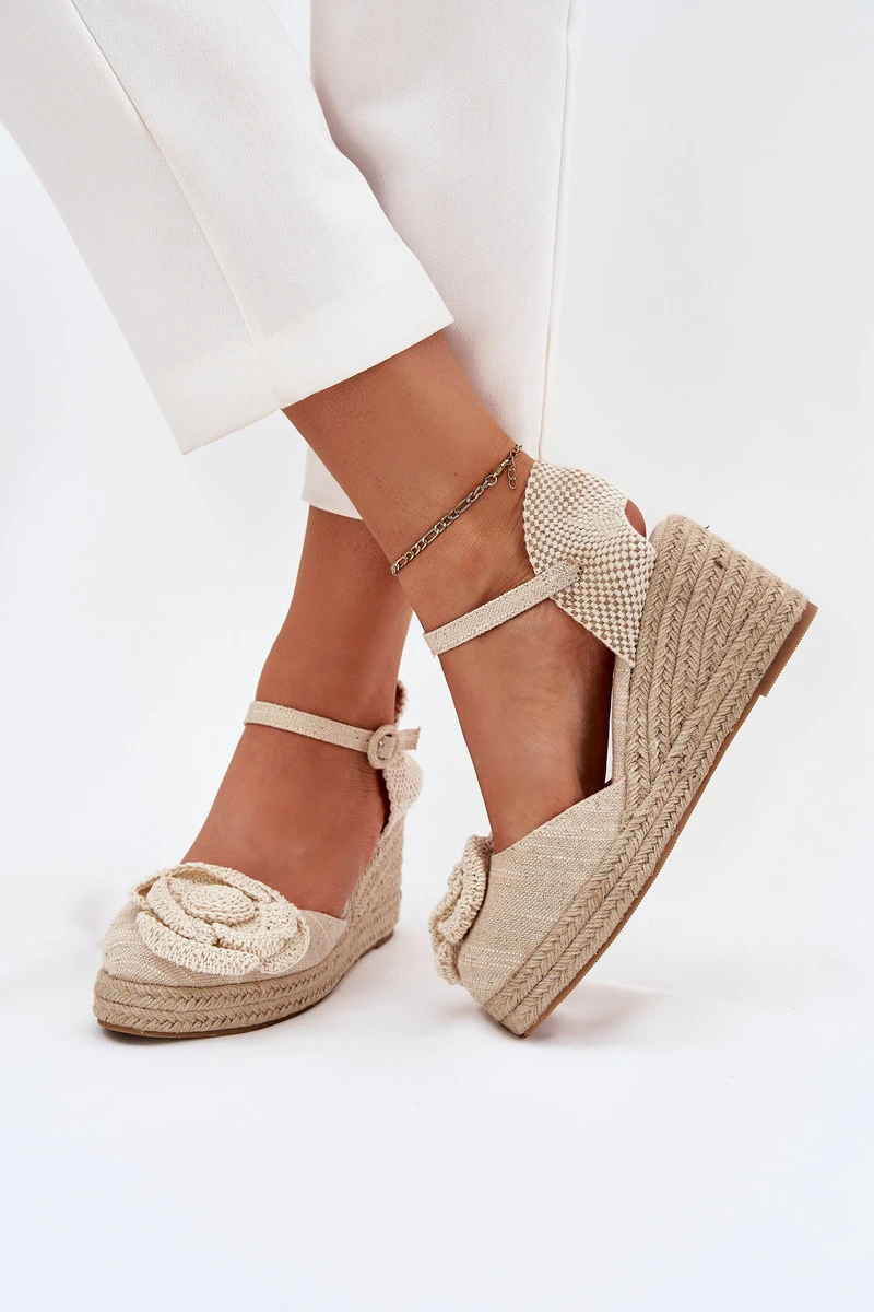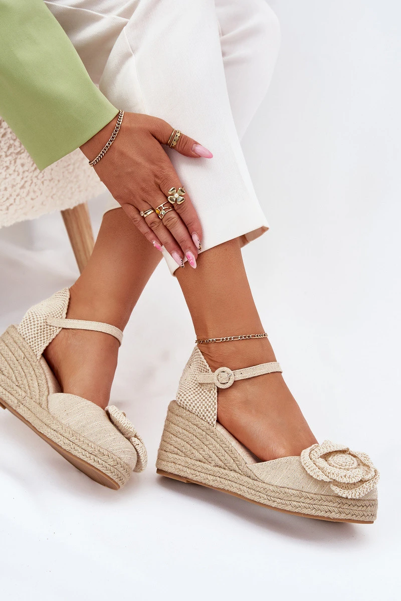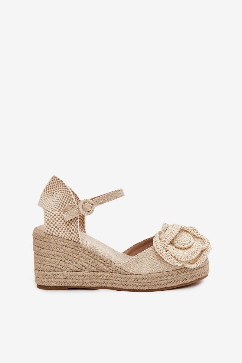 Dámské Sandály Na Klínu S Pletením A Háčkovanou Květinou Béžové Ismilea