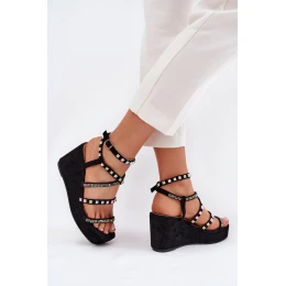 Dámské Sandály Na Klínu Se Zdobením Na Páscích Černé Lunara