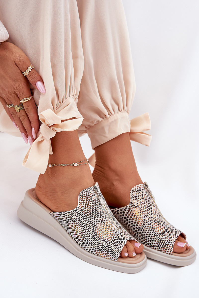Dámské sandály na klínu se zipem vzor béžové model 21692793 - Boto