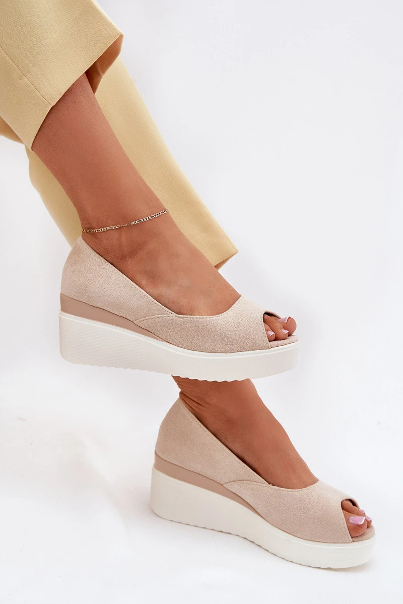 Dámské Sandály Na Klínu Z Eko Semiše Světle Béžové Velira