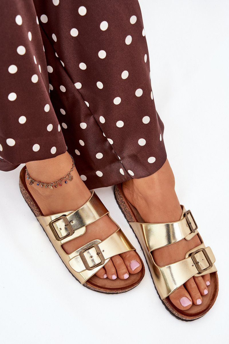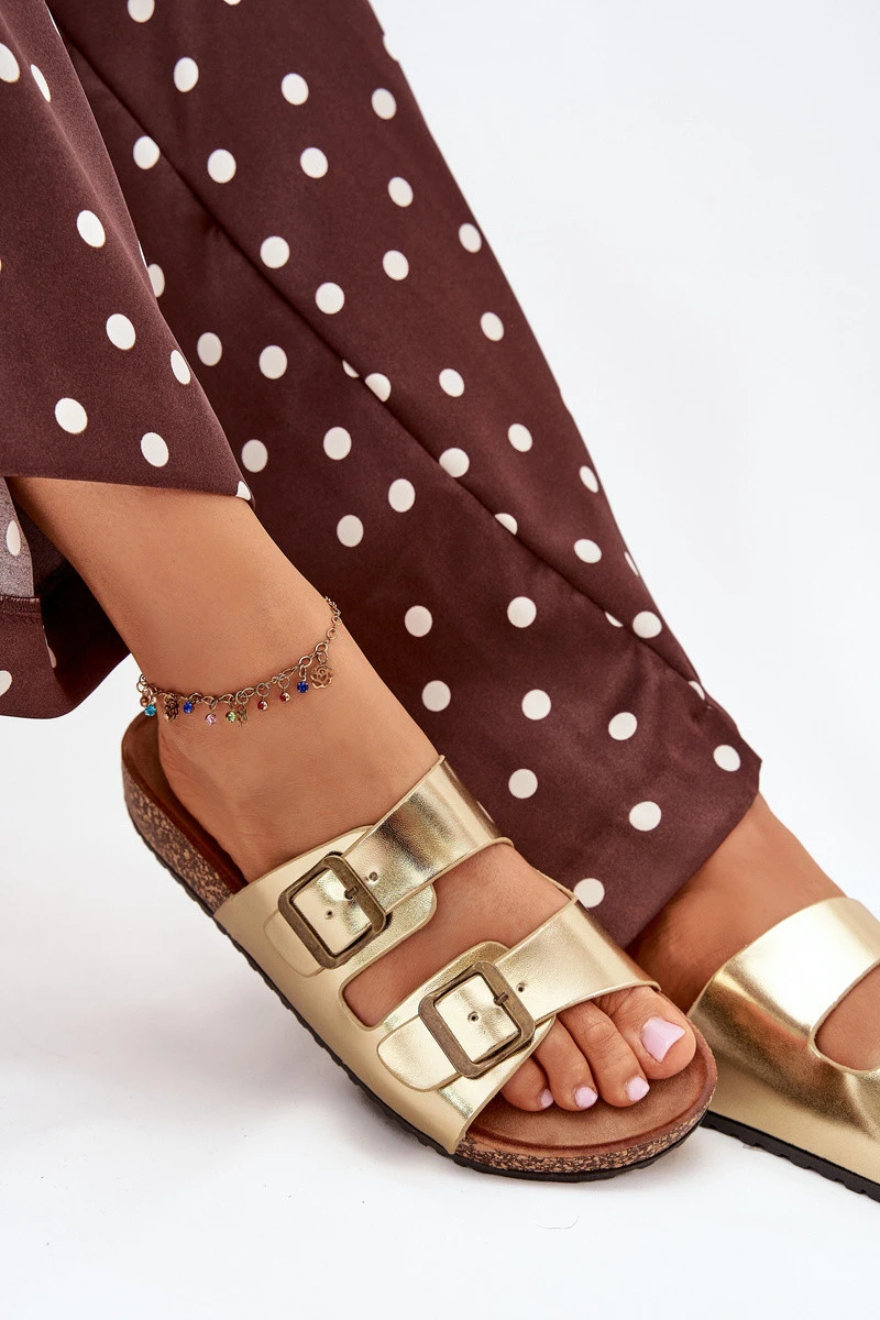 Dámské sandály na korkové platformě s přezkami zlaté Vesina