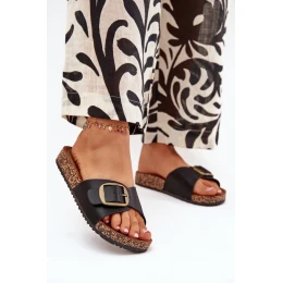 Dámské sandály na korkové platformě s přezkou černé model 21704221 - Boto