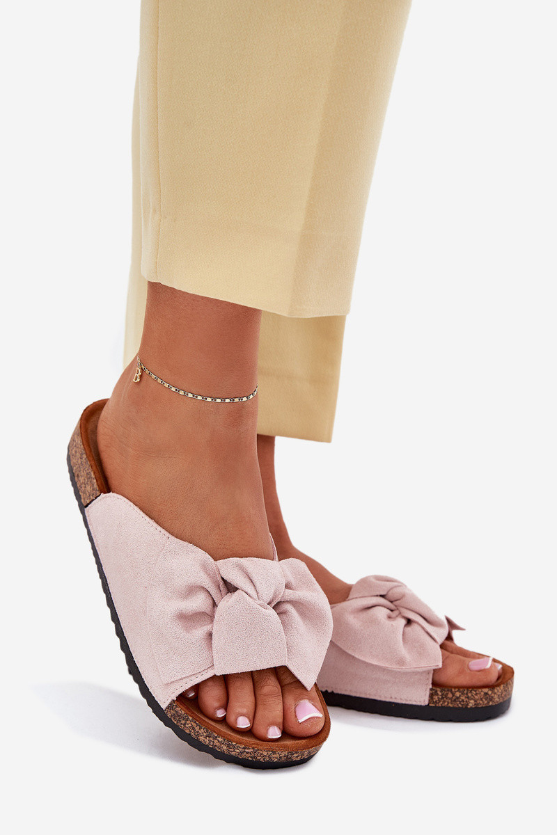 Dámské sandály na korkové podrážce s mašlí světle růžové model 21701490 - Boto