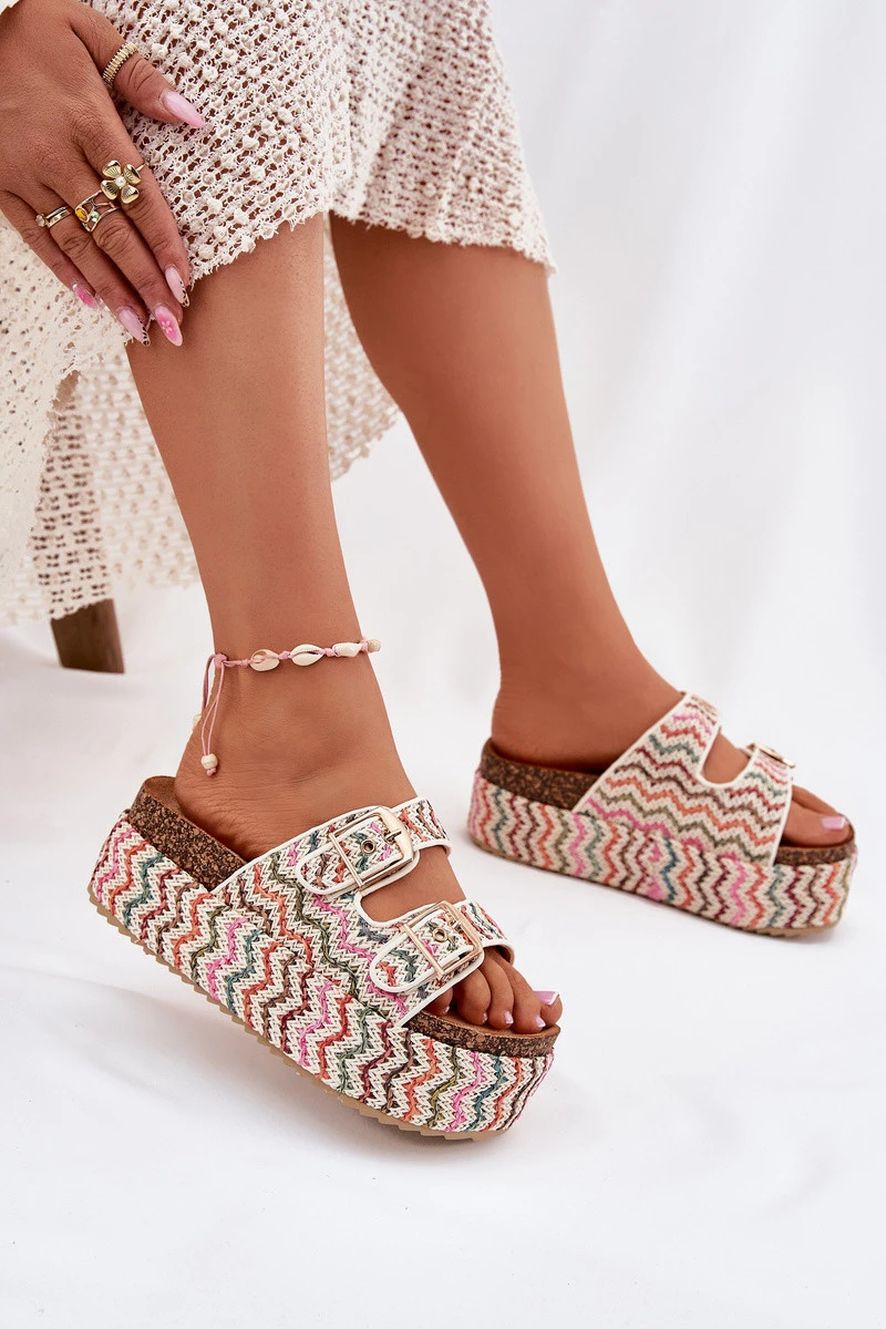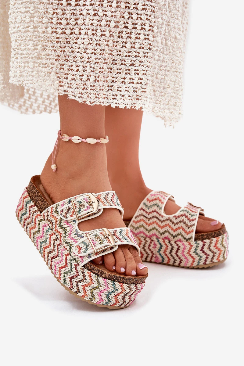 Dámské Sandály Na Masivní Platformě S Pletením A Přezkami Multikolor