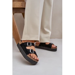 Dámské pantofle z eko semiše jsou pohodlnou a stylovou volbou na letní dny. Uloženy na masivní platformě, poskytují komfort a stabilitu po celý den. Dvě nastavitelné pásky s přezkami umožňují dokonalé přizpůsobení noze a profilovaná stélka zvyšuje pohodlí při nošení. Tyto pantofle jsou skvělou volbou na horké dny! Při výběru velikosti se řiďte tabulkou velikostí.