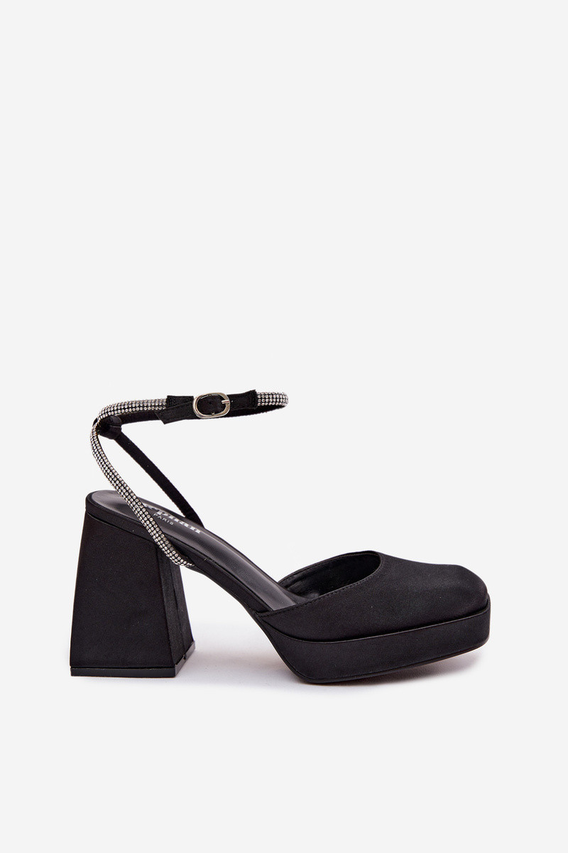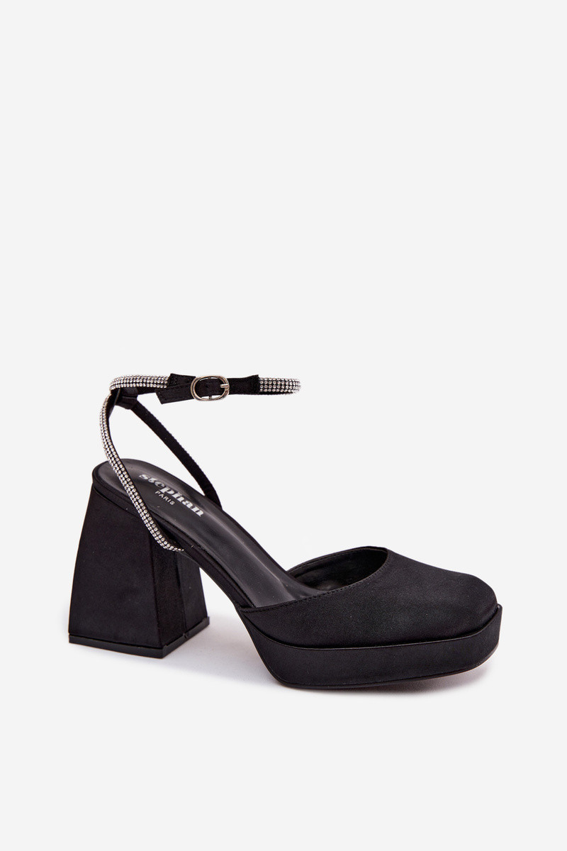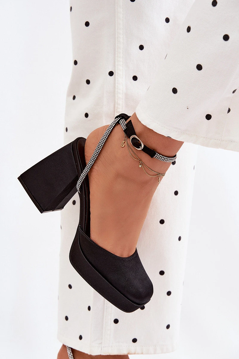 Dámské sandály na masivním podpatku ve tvaru sloupku s páskem se štrasem Černé Seraphina
