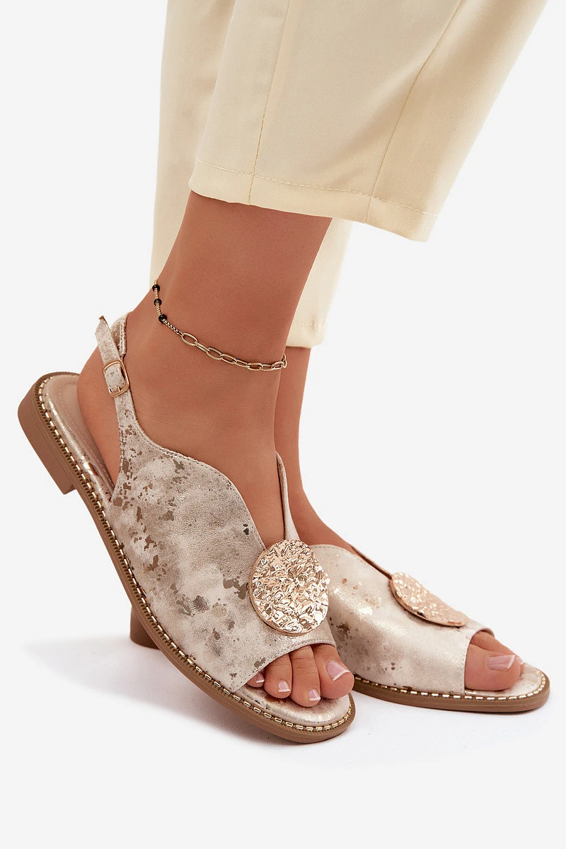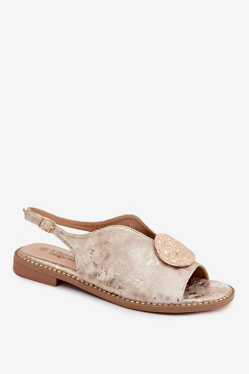 Dámské sandály na nízkém podpatku s ozdobou S.Barski KV61-6035 Zlaté