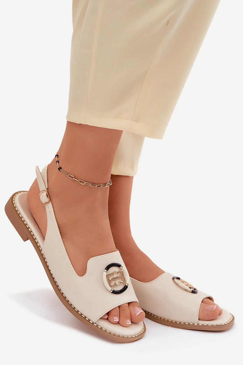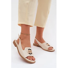 Dámské sandály na nízkém podpatku s ozdobou S.Barski KV61-6037 Krémové