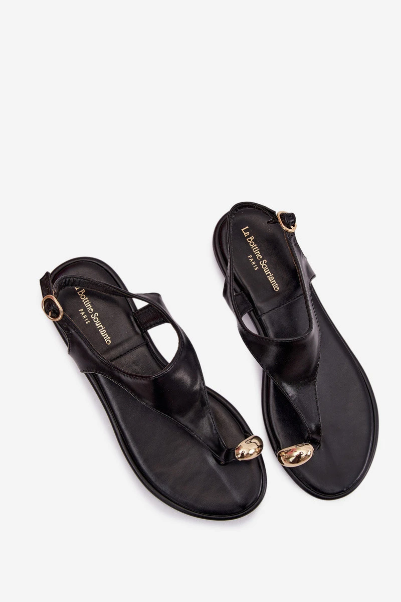 Dámské sandály na nízkém podpatku se zlatým detailem Černé model 21956157 - Boto