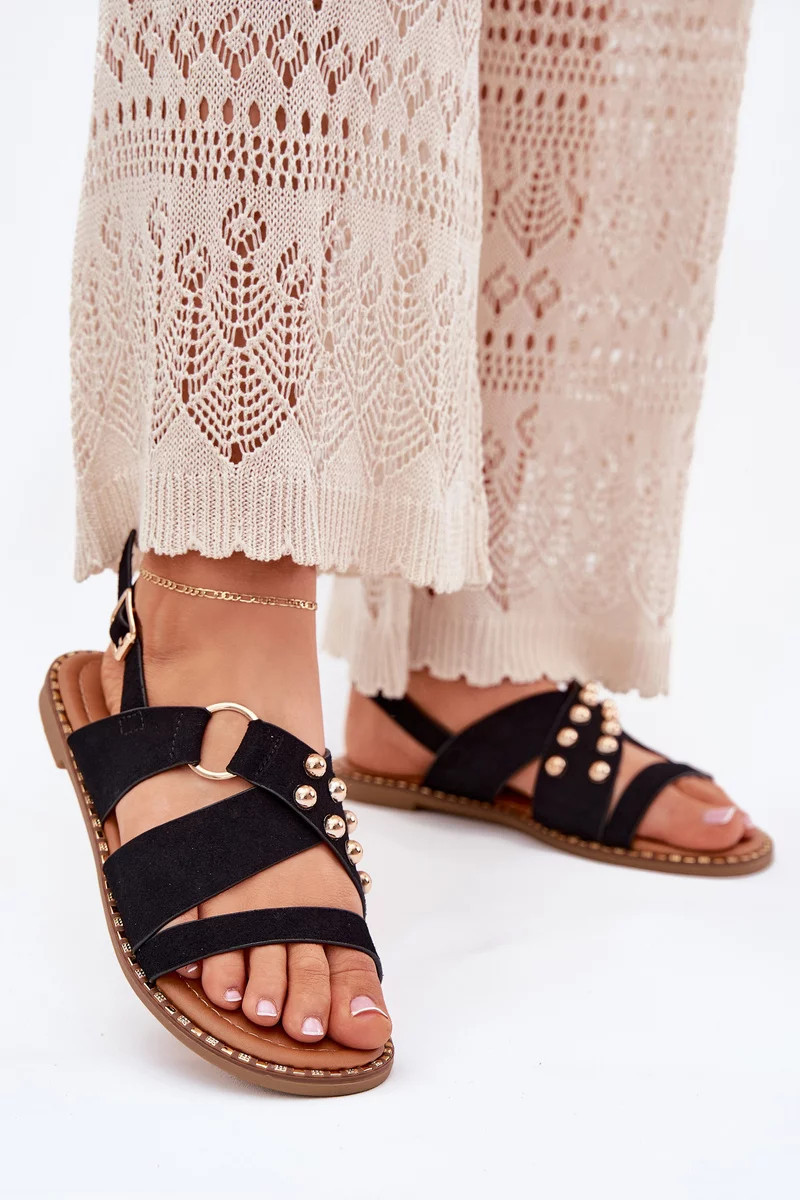 Dámské sandály na nízkém podpatku se zlatými cvoky – černé