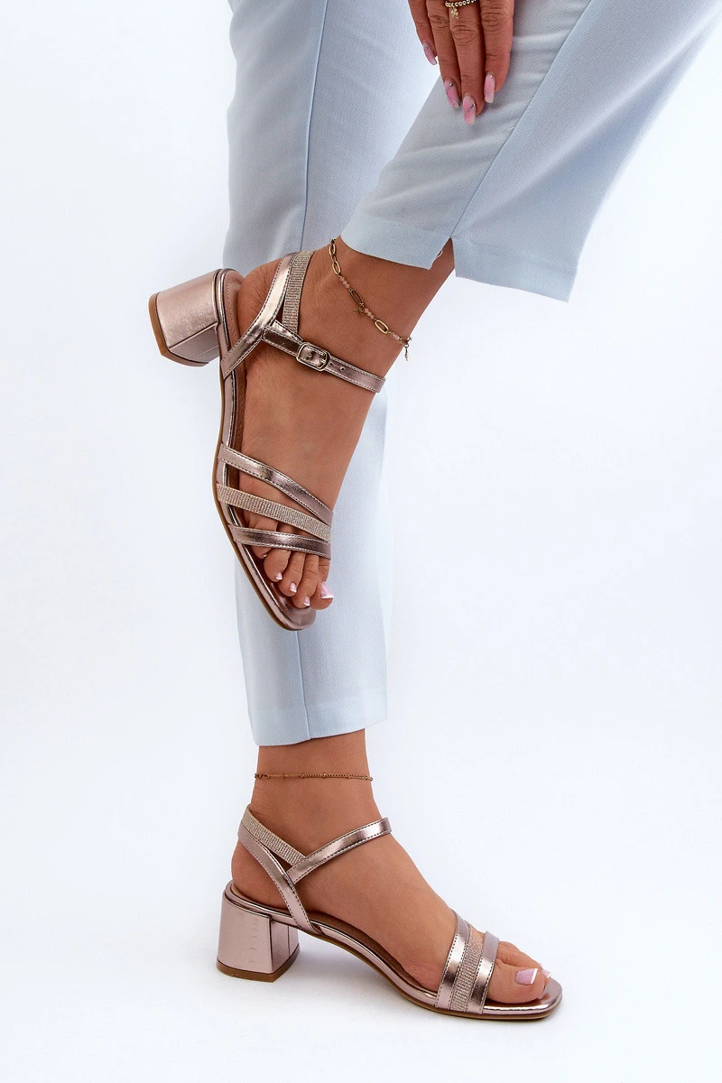 Půvabné dámské sandály z ekologické kůže budou ideální volbou pro různé slavnosti. Vpředu tři propojené popruhy. Podpatek ve formě nízkého kvádru zajistí stabilitu a pohodlí během nošení. Zapínají se na nastavitelný popruh s přezkou, což zaručuje správné přizpůsobení. Při výběru velikosti se řiďte tabulkou velikostí.