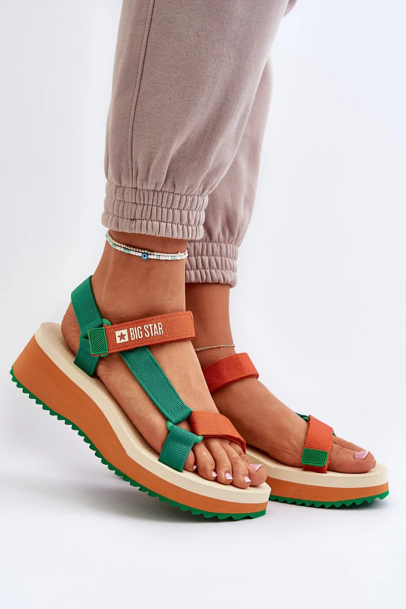 Dámské sandály na platformě a klínku Big Star zeleno-oranžové