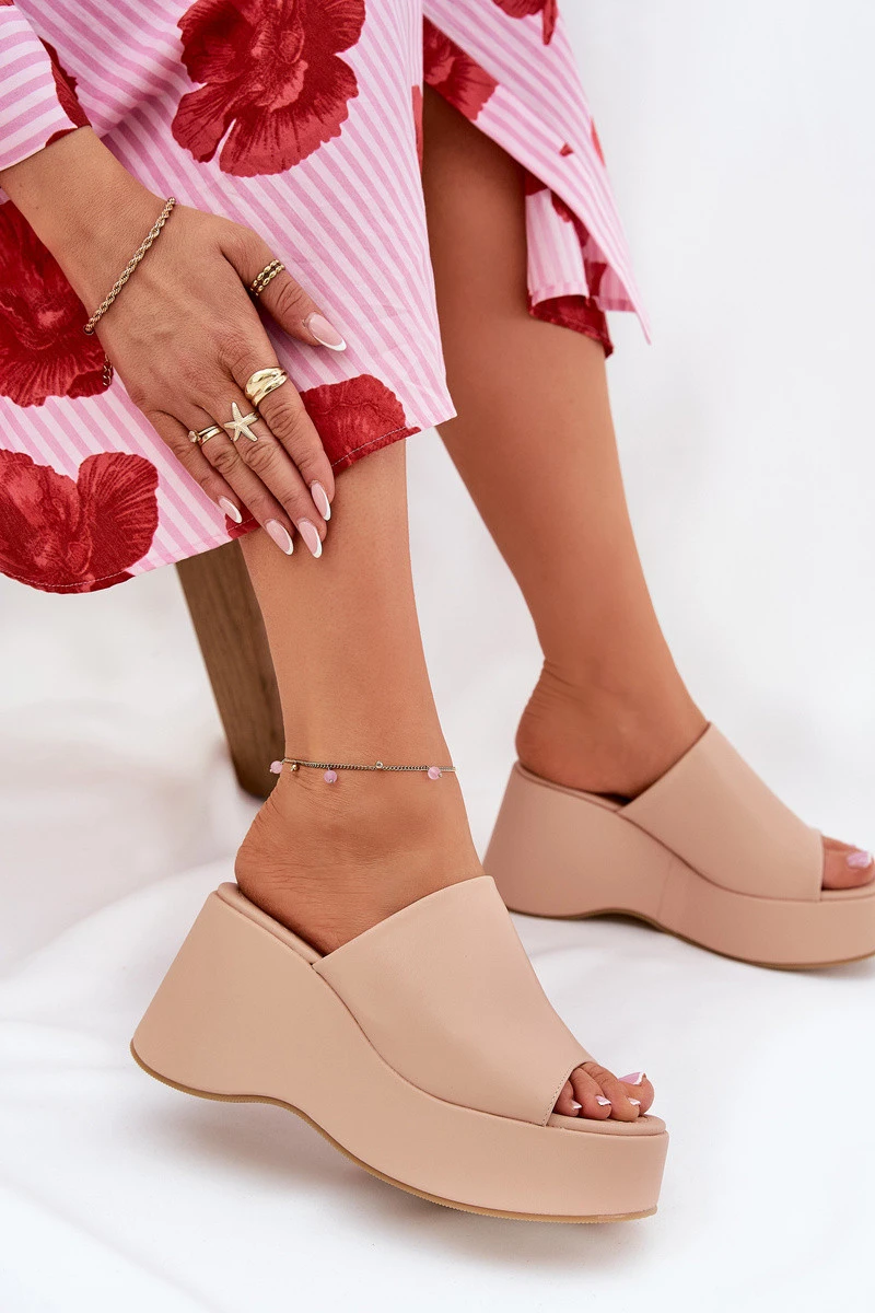 Stylové pantofle vyrobené z eko kůže. Uloženy na platformě a klínu, poskytují stabilitu a komfort po celý den, zároveň opticky prodlužují nohy a zvýrazňují siluetu. Měkká stélka zajišťuje příjemné nošení, poskytuje odpovídající amortizaci a pohodlí při chůzi. Tyto pantofle se skvěle hodí do každodenních stylizací, ideální k letním šatům, sukním nebo kalhotám. Při výběru velikosti se řiďte tabulkou velikostí.