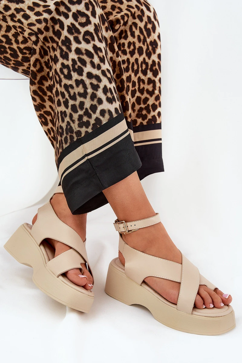 Dámské sandály na platformě a klínu eko kůže béžové Tenzorus