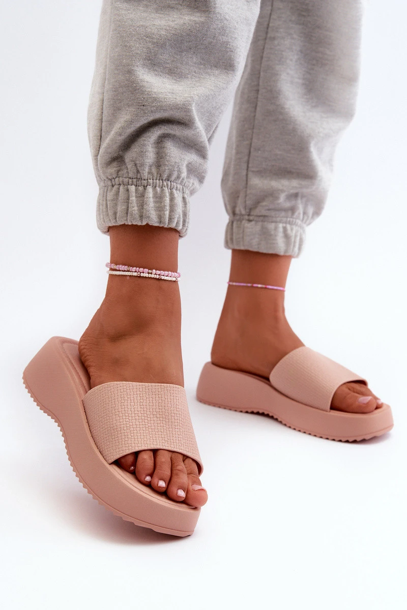Dámské žabky na platformě a jemném klínku jsou kombinací stylu a pohodlí. Vrchní část je vyrobena z pryžového materiálu. Klasický střih, skvělý na každodenní stylizace! Při výběru velikosti se řiďte tabulkou velikostí.