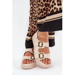 Dámské Sandály Na Platformě A Klínu S Přezkami Béžové Genorre