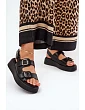 Dámské sandály na platformě a klínu s přezkami černé Genorre