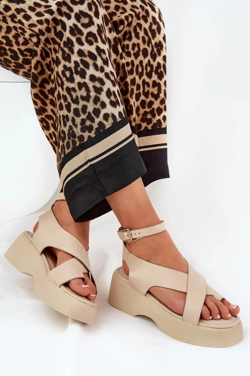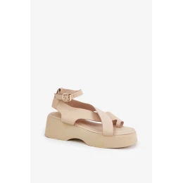 Dámské sandály na platformě a klínu z eko kůže – béžové Tenzorus