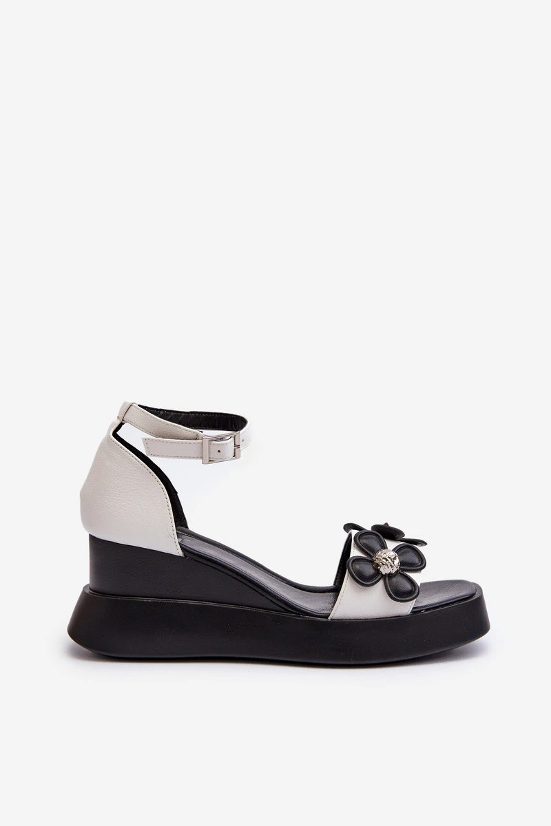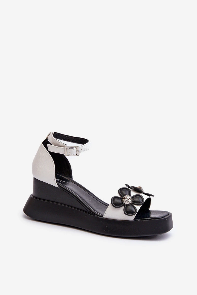 Dámské sandály na platformě a podpatky s květinami Bílé model 21658465 - Boto