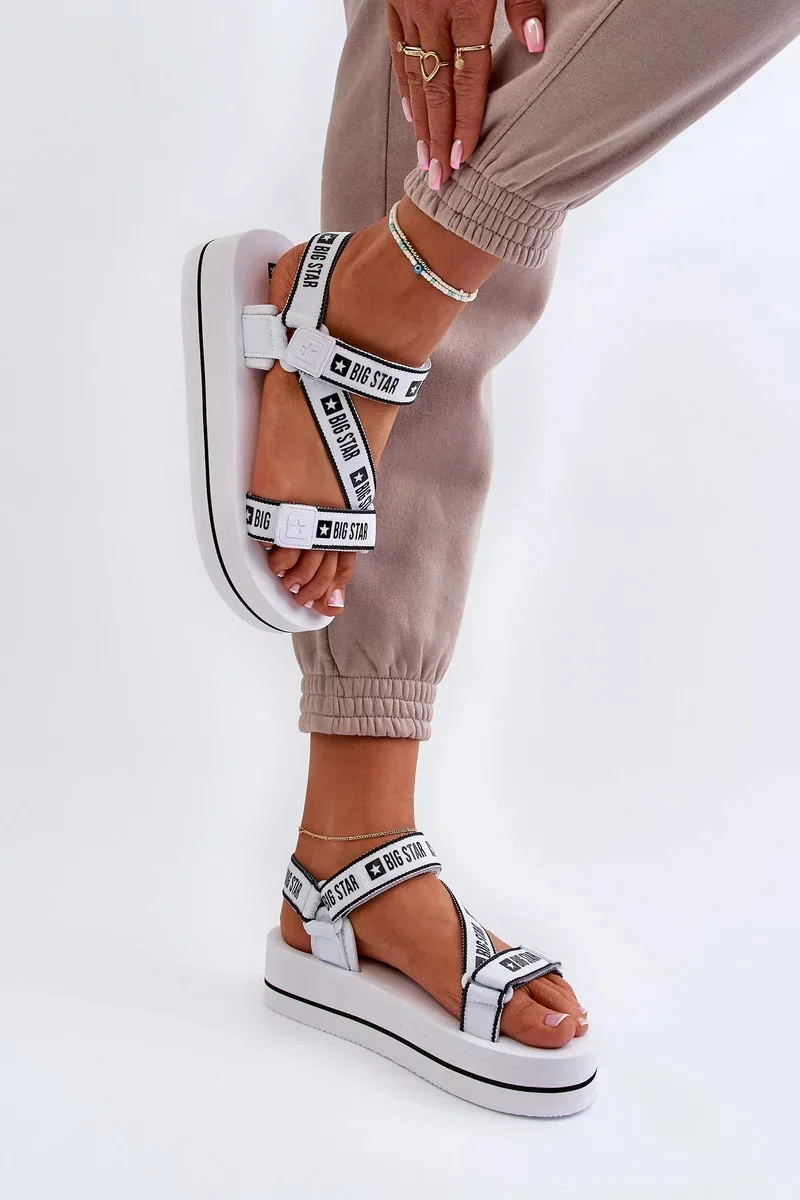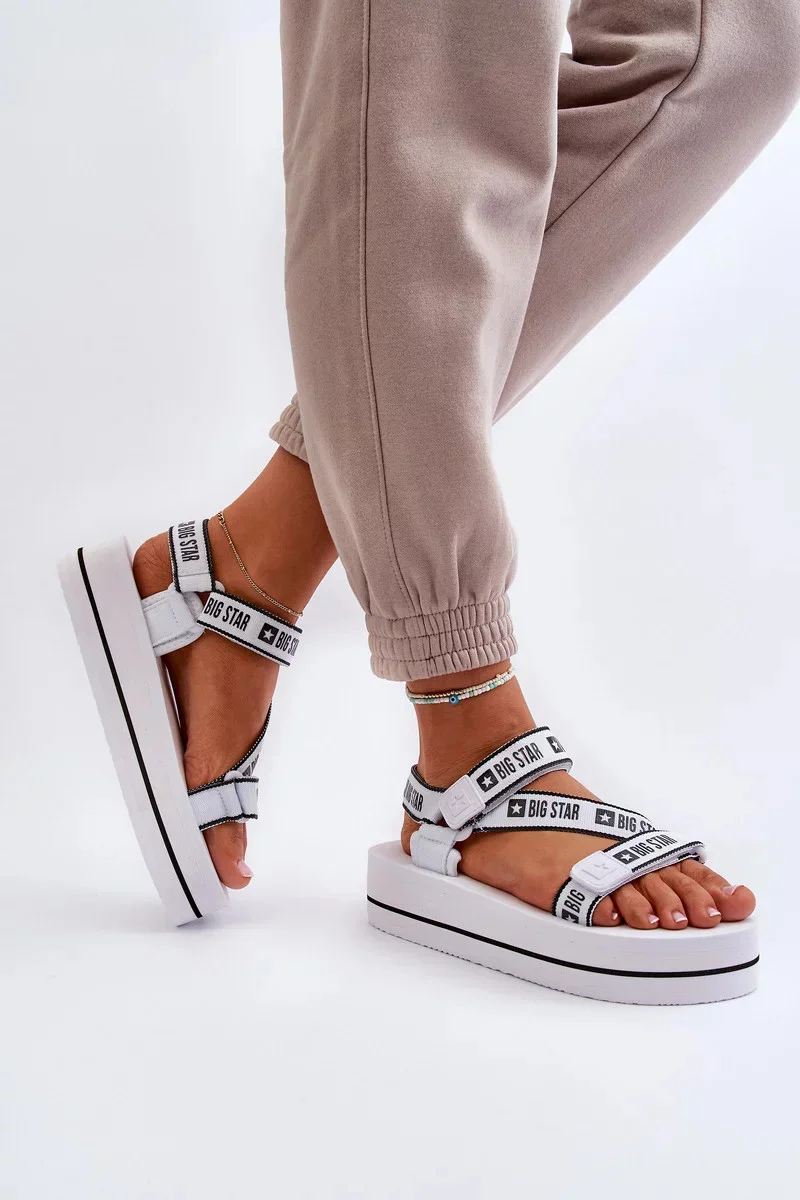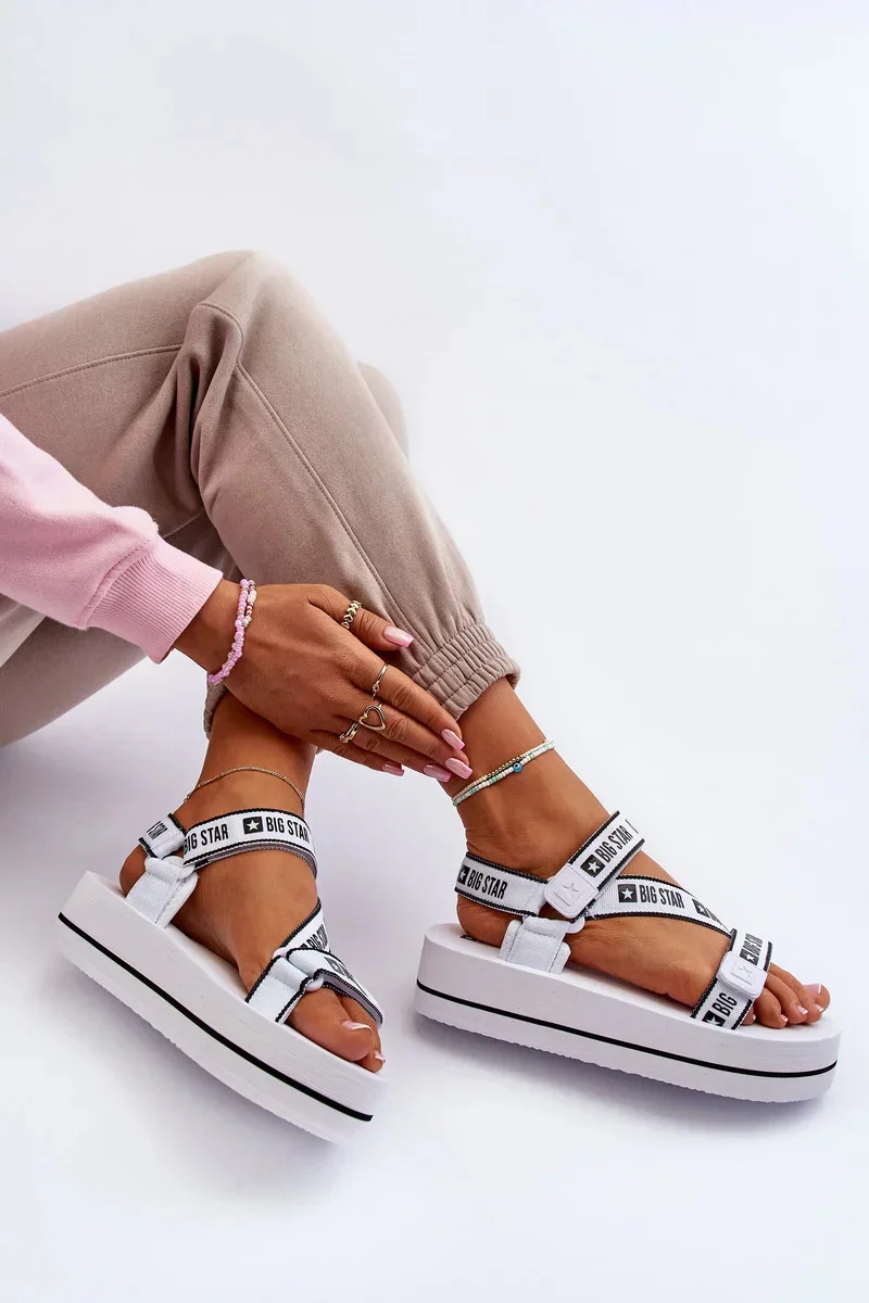 Dámské sandály značky Big Star jsou dokonalou kombinací pohodlí a stylu. Zapínají se na suchý zip, zaručují snadné přizpůsobení noze. Namontované na platformě. Tyto sandály, ideální pro letní dny, jsou perfektní jak na pláž, tak na procházky po městě a dodají lehkost každému letnímu stylingu! Při výběru velikosti se řiďte tabulkou velikostí.