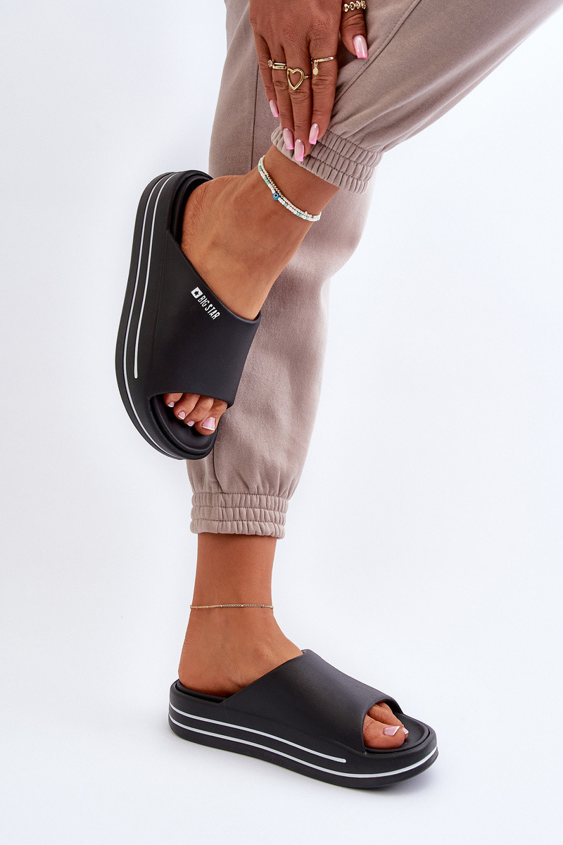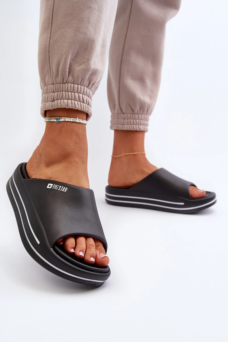 Dámské žabky od značky Big Star vyrobené z měkké a příjemné pěny. Vysoká podrážka přidává pár centimetrů na výšce, což znamená, že nejsou jen pohodlné, ale také ideální na letní dny. Skvěle se hodí jak na pláž, tak do každodenního nošení a ladí s různými ležérními styly, podtrhující volnou povahu letních dní. Při výběru velikosti se řiďte tabulkou velikostí.