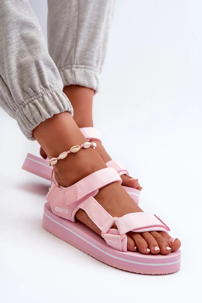 Dámské sandály značky Big Star jsou dokonalou kombinací pohodlí a stylu. Zapínají se na suchý zip, zaručují snadné přizpůsobení noze. Namontováno na platformě vyrobené z pěnového materiálu. Tyto sandály, ideální pro letní dny, jsou perfektní jak na pláž, tak na procházky po městě a dodají lehkost každému letnímu stylingu! Při výběru velikosti se řiďte tabulkou velikostí.
