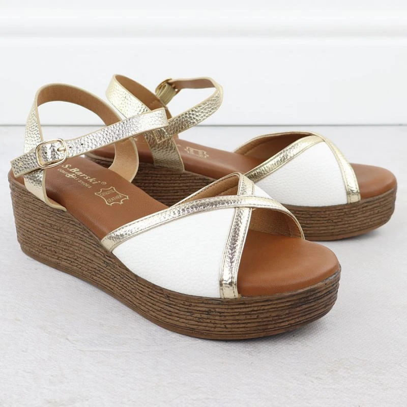 Dámské sandály na platformě bílé a zlaté model 21904971 - S.Barski