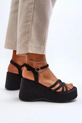 Perfektní dámské letní sandály! Mají vysoký klín a platformu zdobenou jutovým materiálem. Mají otevřený čtvercovou špičku. Sandály jsou připevněny na dlouhý, nastavitelný páskách s přezkou. Extrémně měkká ekologická stélka je velmi pohodlná pro používání po celý den. Tyto boty budou skvělým příslušenstvím ke vzdušným šatům nebo sukní.
