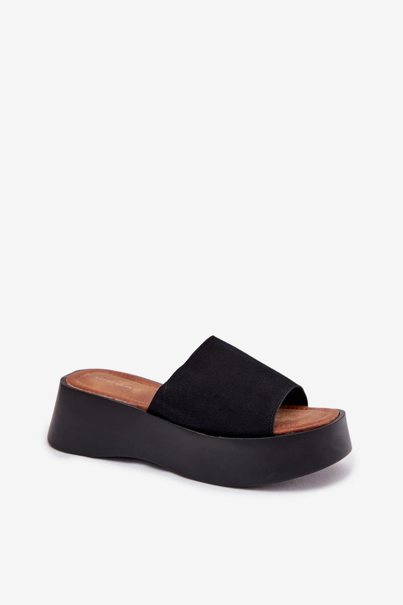 Dámské nazouváky na platformě jsou pohodlnou a stylovou volbou na horké dny. Pásek je vyroben z eko semiše. Měkká vložka zajišťuje pohodlí po celý den. Stabilní platforma mírně zvedá postavu, aniž by obětovala pohodlí. Tento model se skvěle hodí do každodenních letních outfitů. Při výběru velikosti se řiďte tabulkou velikostí.