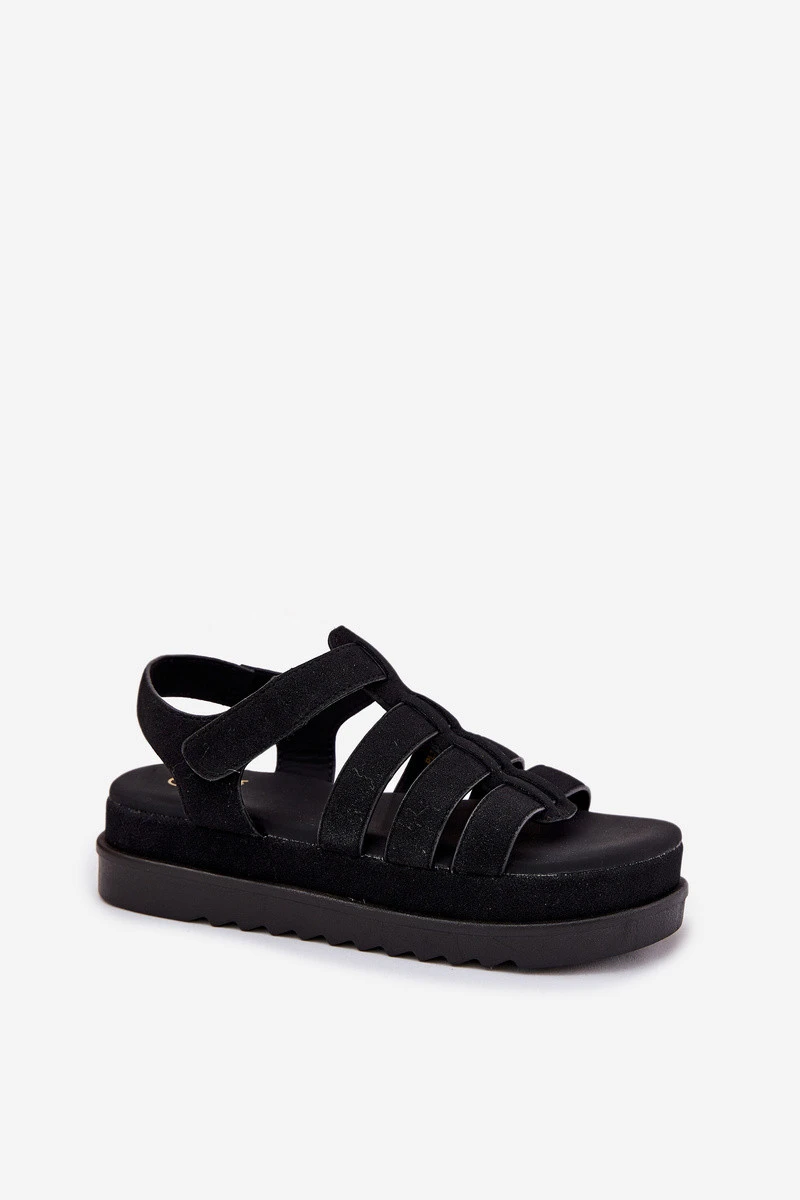 Dámské Sandály Na Platformě Eko Semišové Černé Filisenia