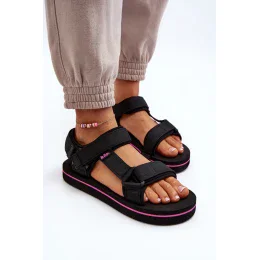 Dámské sandály z textilního materiálu. Nasazeno na pěnovou platformu. Správné usazení zajišťuje zapínání na suchý zip. Sandály ve sportovním stylu jsou perfektní volbou pro ty, kteří oceňují pohodlí a funkčnost. Tento módní styl nesmí chybět ve vašem letním šatníku! Při výběru velikosti se řiďte tabulkou velikostí.