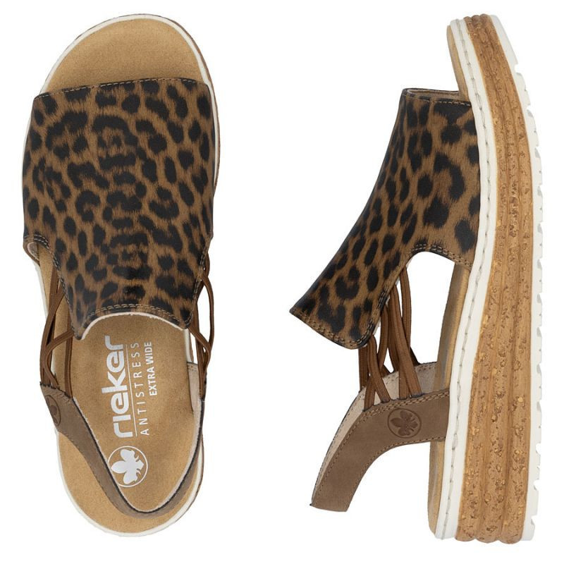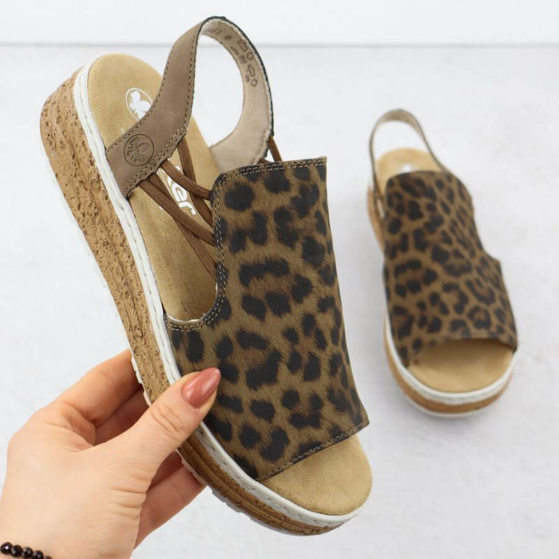 Dámské sandály na platformě s leopardím vzorem v béžové barvě Rieker 62741-90