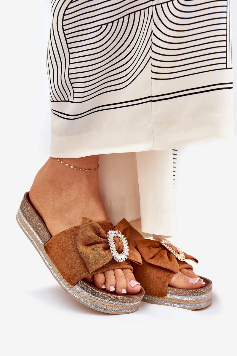 Dámské Sandály Na Platformě S Mašlí A Hnědé model 21689880 - Boto