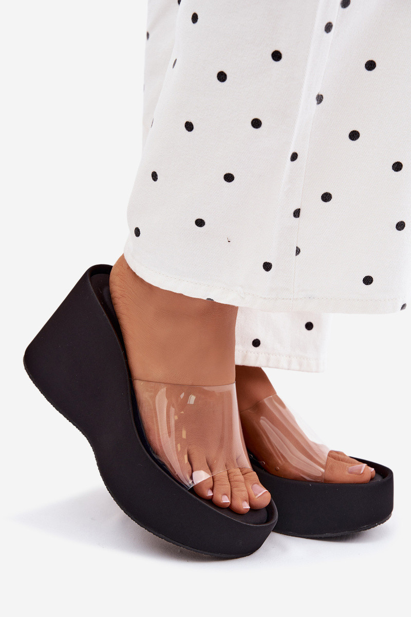 Dámské pantofle s průhledným pásem jsou stylovým návrhem na teplé dny. Umístěné na platformě, poskytují pohodlí a stabilitu, a zároveň dodávají lehkost a styl. Průhledný pásek jim dává moderní charakter, který se dokonale hodí k letním šatům nebo kalhotám. Ideální pro každodenní nošení nebo večerní vycházky. Při výběru velikosti se řiďte tabulkou velikostí.