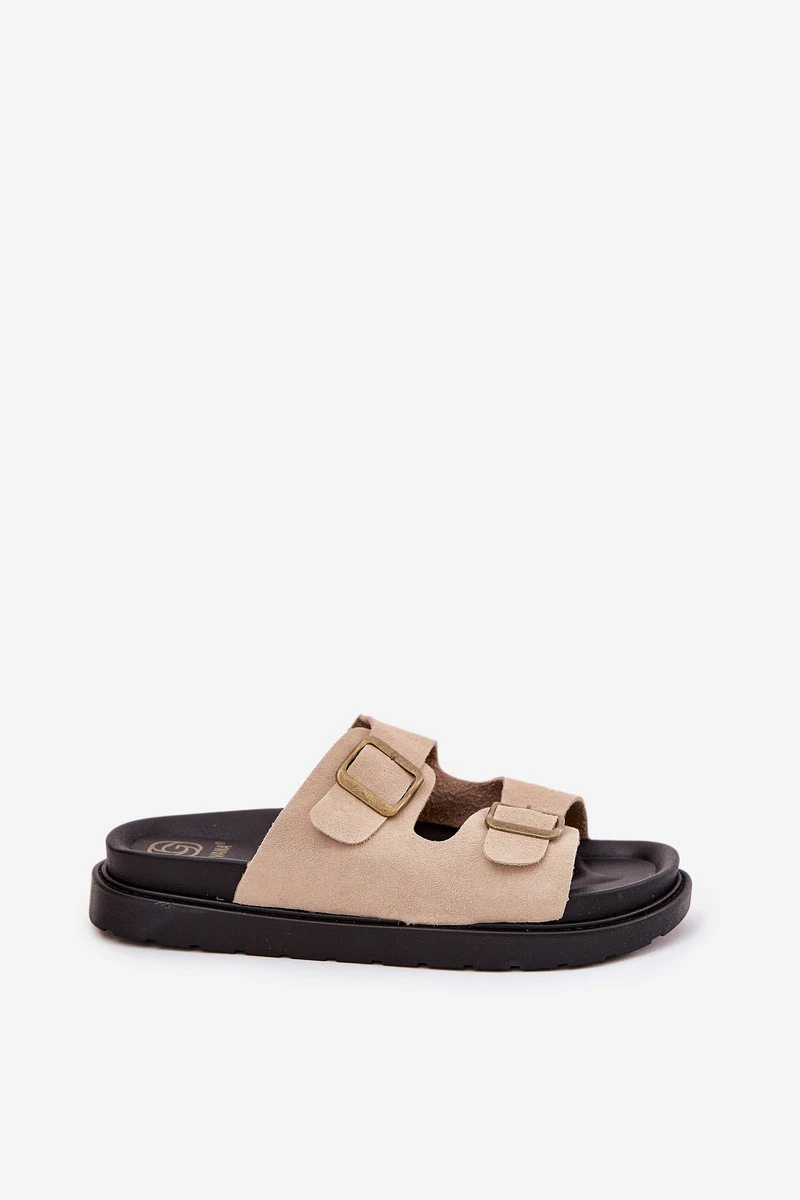 Stylové pantofle vyrobené z eko zamše. Umístěné na platformě, která spojuje pohodlí s módním vzhledem. Pásky s přezkami zajišťují dokonalé přizpůsobení a profilovaná stélka zaručuje komfort po celý den. Tyto pantofle budou skvělou volbou na letní dny, hodící se jak k šatům, tak k kalhotám. Při výběru velikosti se řiďte tabulkou velikostí.