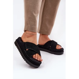 Dámské pantofle vyrobené z eko semiše jsou vynikající volbou na teplé dny. Umístěné na platformě, zajišťují pohodlí a stabilitu po celý den. Vpředu se nacházejí dva překrývající se pásky, z nichž jeden má suchý zip, což umožňuje snadné přizpůsobení noze. Tyto pantofle kombinují komfort s módním vzhledem, ideální pro letní styly. Při výběru velikosti se řiďte tabulkou velikostí.