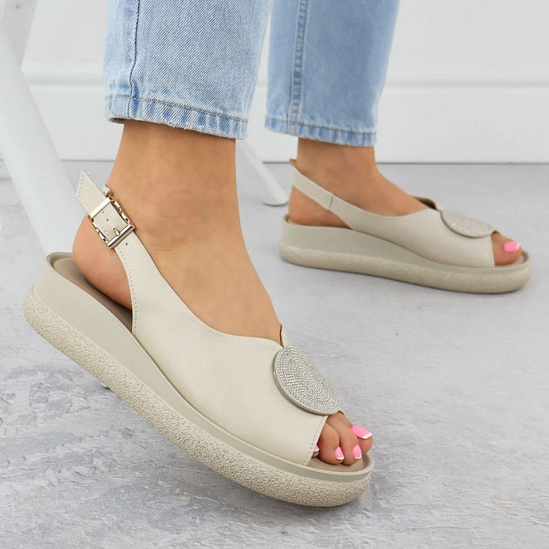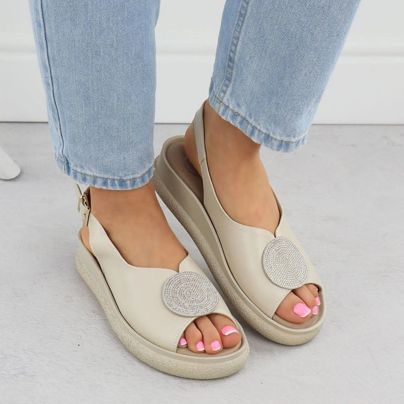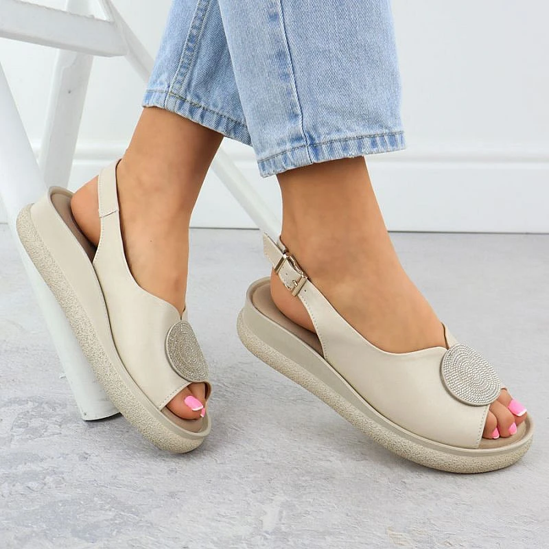 Dámské sandály na platformě se zirkony béžové Filippo DS6984