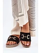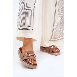 Pantofle vyrobené z eko semiše. Vpředu ozdobný zlatý detail, který jim dodává jemný lesk. Usazené na platformě zdobené třpytkami, které přinášejí trochu glamour do každého outfitu. Profilovaná stélka zajišťuje pohodlí po celý den. Ideální na letní dny, tyto pantofle se skvěle hodí k šatům, sukním nebo kalhotám a spojují módní vzhled s funkčností. Při výběru velikosti se řiďte tabulkou velikostí.