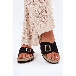 Dámské Sandały Na Platformě Se Zlatou Přezkou Černé Selira