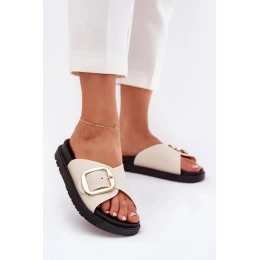 Dámské pantofle vyrobené z gumového materiálu. Uloženy na platformě. Velká zlatá spona jim dodává eleganci a odlišuje je od ostatních modelů. Ideální na každodenní nošení, skvěle se hodí k letním stylizacím a zajišťují pohodlí a módní vzhled. Při výběru velikosti se řiďte tabulkou velikostí.