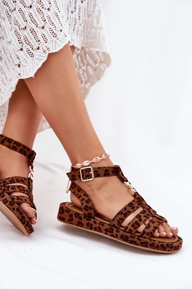 Dámské sandály vyrobené z eko semiše. Usazené na jemné platformě, poskytují pohodlí a stabilitu po celý den. Zapínají se na sponu s nastavitelným páskem, což umožňuje dokonalé přizpůsobení noze. Vpředu se nachází jemný zlatý detail, který spojuje pásky. Měkká stélka zajišťuje pohodlí při chůzi. Ideálně se hodí jak k šatům, tak k kalhotám, vytvářející stylový vzhled pro každou příležitost. Při výběru velikosti se řiďte tabulkou velikostí.