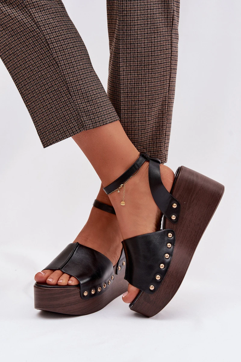 Dámské sandály na platformě se zlatými přezkami Černé Galorina
