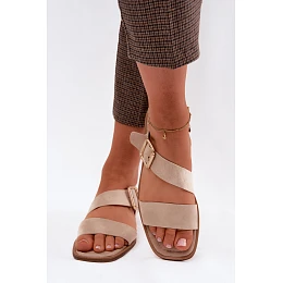 Dámské sandály na ploché podrážce Béžové se zlatou sponou Verissea