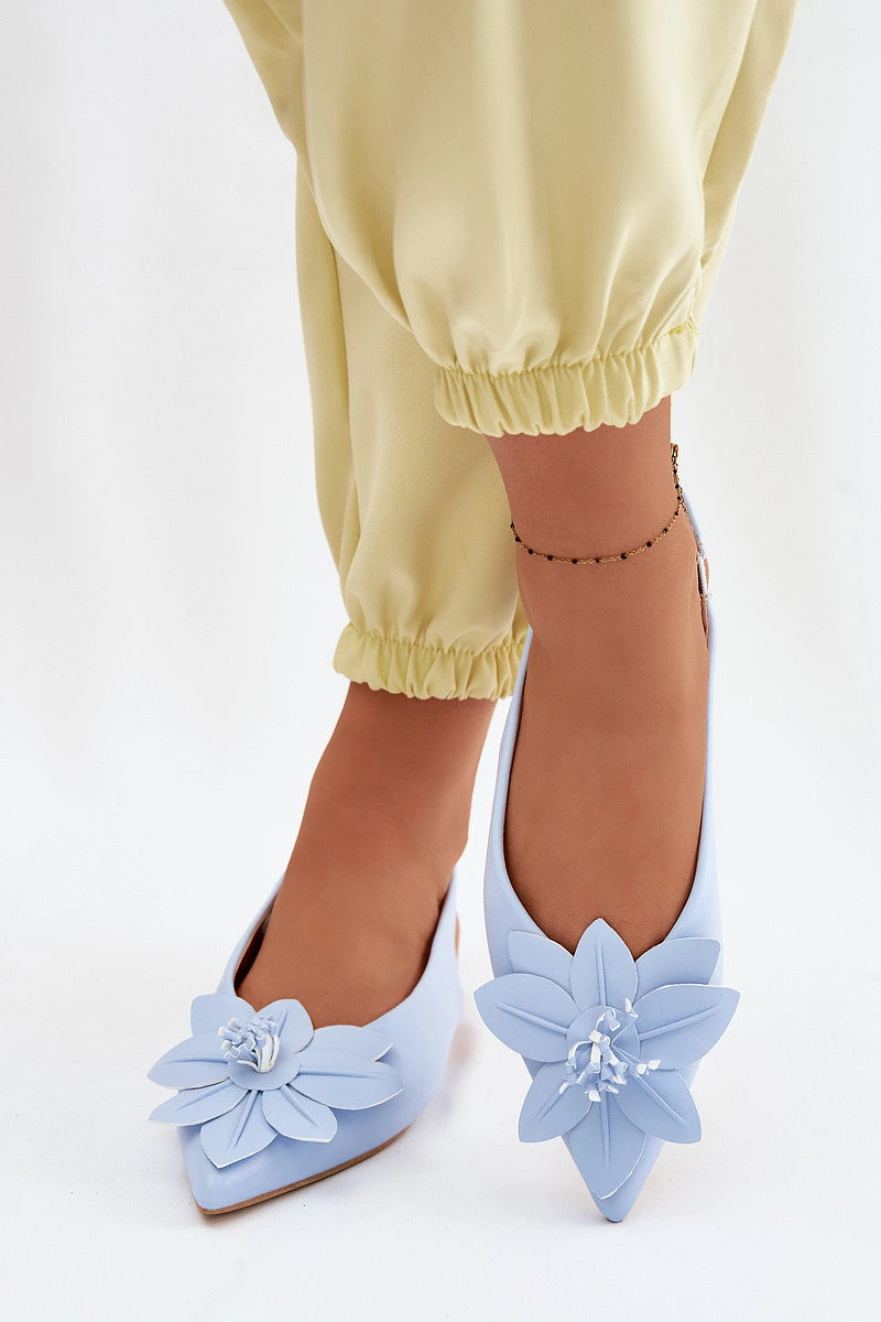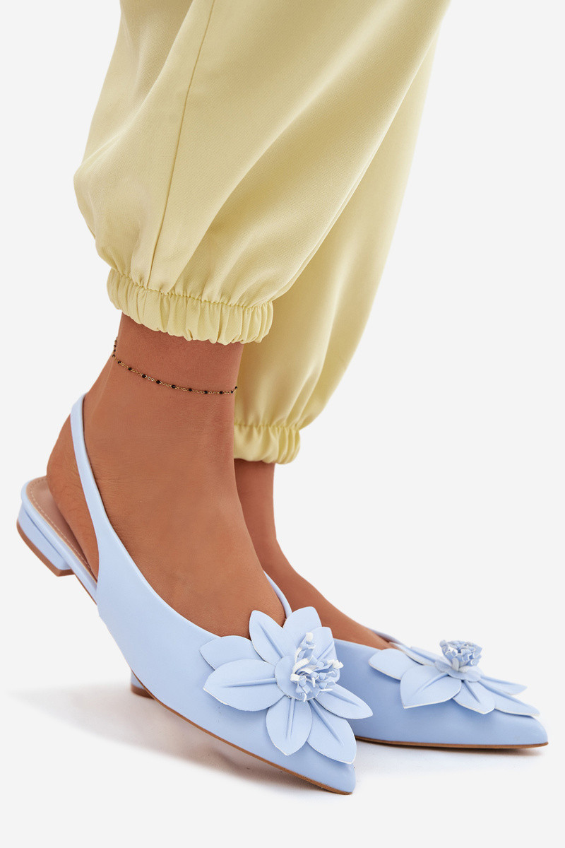 Dámské sandály na ploché podrážce s dekorativním květem modré Telivette