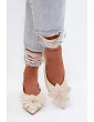 Elegantní dámské sandály na ploché podrážce jsou stylovou volbou na teplé dny. Vyrobené z vysoce kvalitní ekokůže, spojují módní vzhled s pohodlím. Model se vyznačuje špičatými nosky, které dodávají celku jemnost a opticky zeštíhlují nohu. Dekorativní květ umístěný vpředu dodává botám ženský šarm a je efektním detailem, který přitahuje pozornost. Plochá podrážka zajišťuje pohodlí při chůzi, takže sandály jsou ideální na každodenní nošení i na letní oslavy. Při výběru velikosti se řiďte tabulkou velikostí.