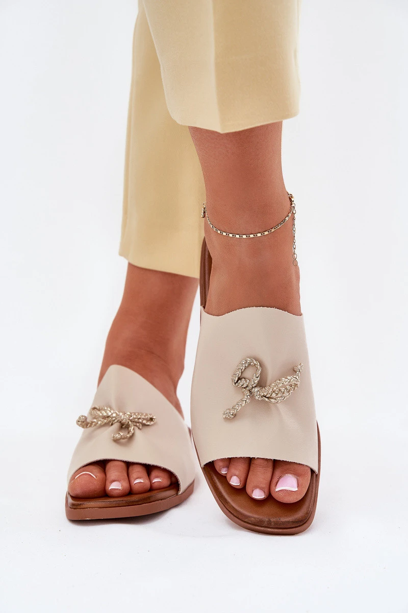 Přidání recenze k Dámské sandály na plochém podpatku s ozdobným vázáním béžové model 21701717 - EVENTO
