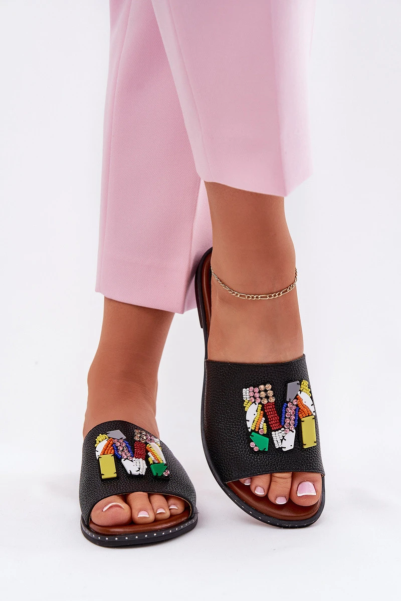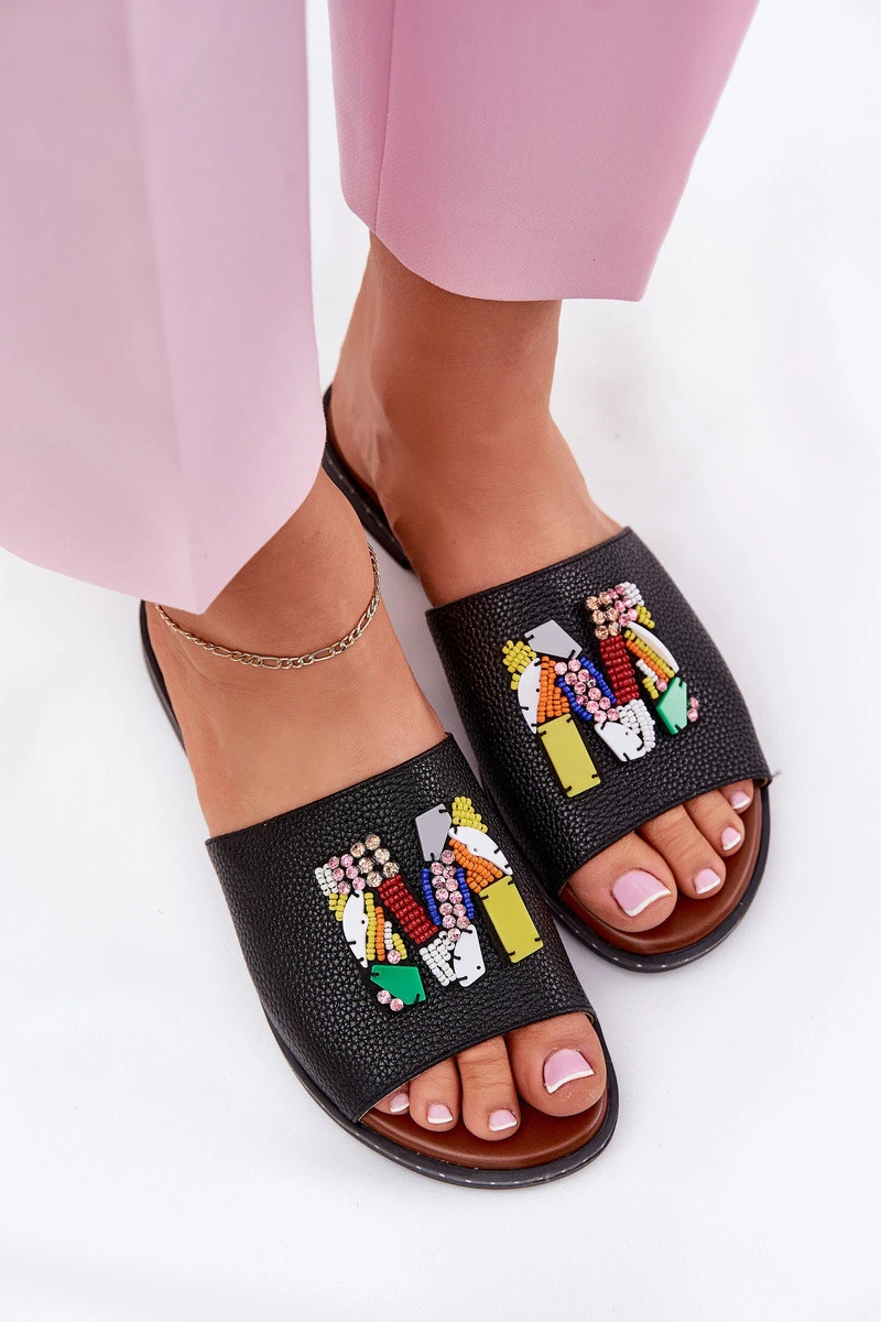 Dámské sandály na plochém podpatku s ozdobou černé model 21695688 - Boto